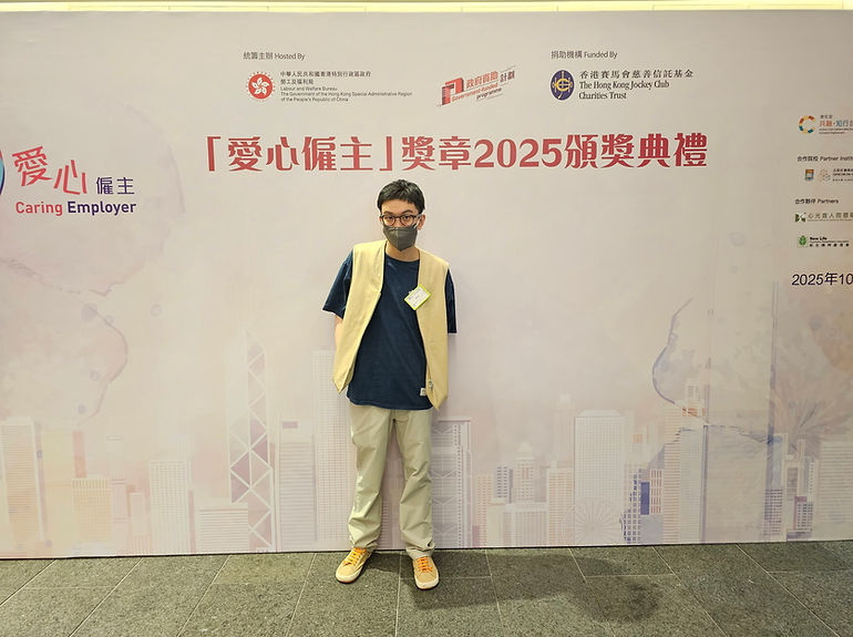 好開心呀!我攞咗勞工及福利局舉辦嘅「愛心僱主」獎章設計比賽殘疾人士組冠軍,可以去香港故宮文化博物館參加頒獎典禮!